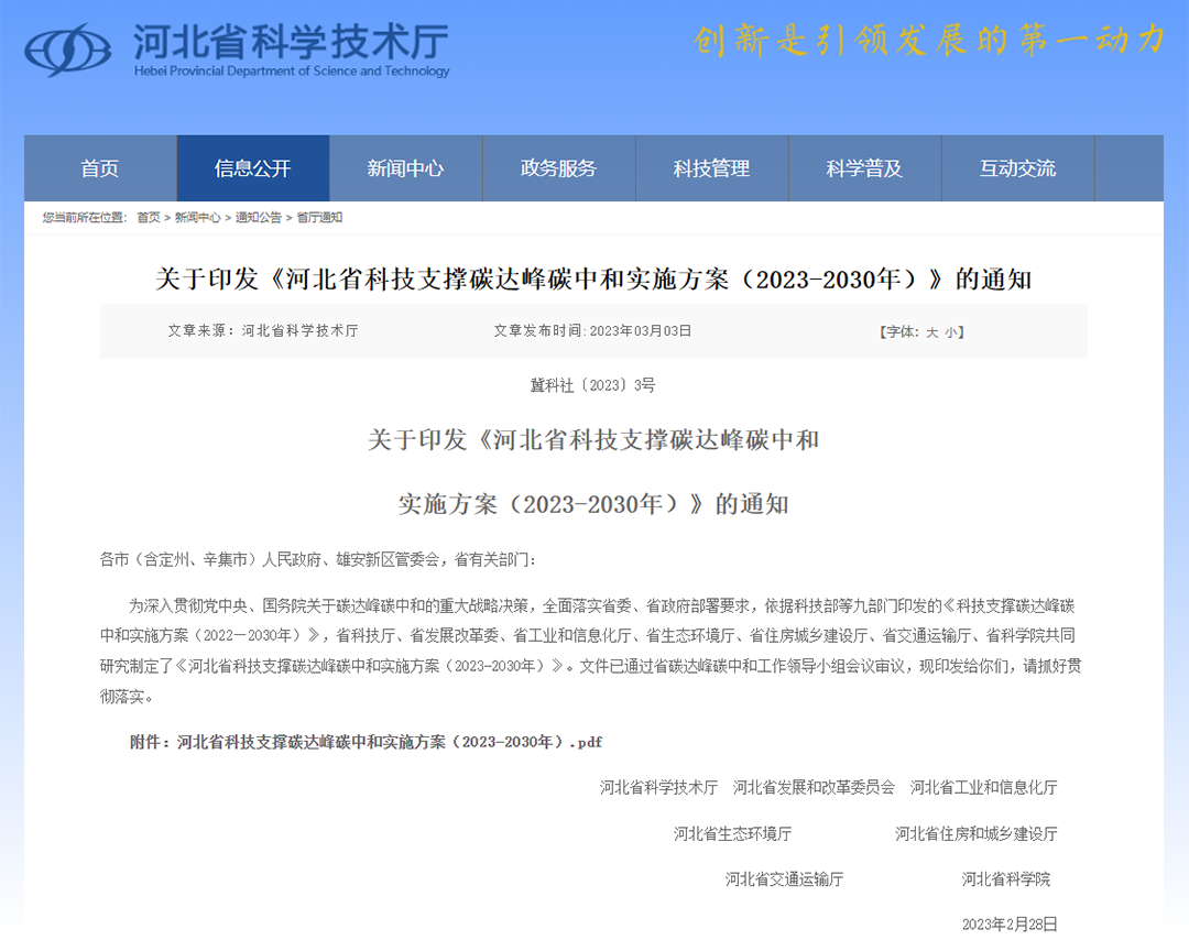 • 2025-08-20河北省科技支撐碳達峰碳中和實施方案(2023-2030年)